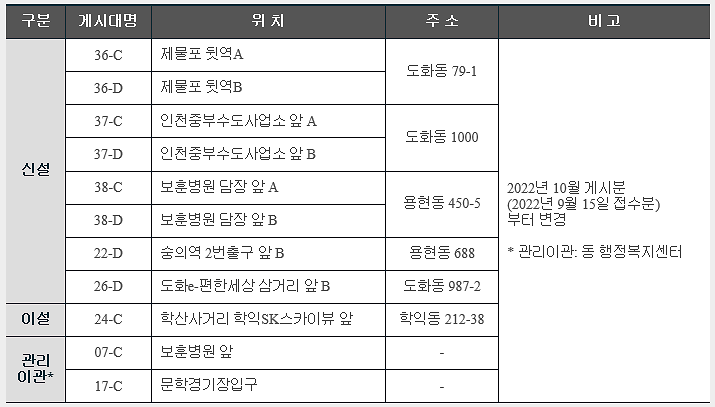 2단 현수막게시대 확충사업에 따른 변경사항(2022년 9월 15일 접수분부터 변경)