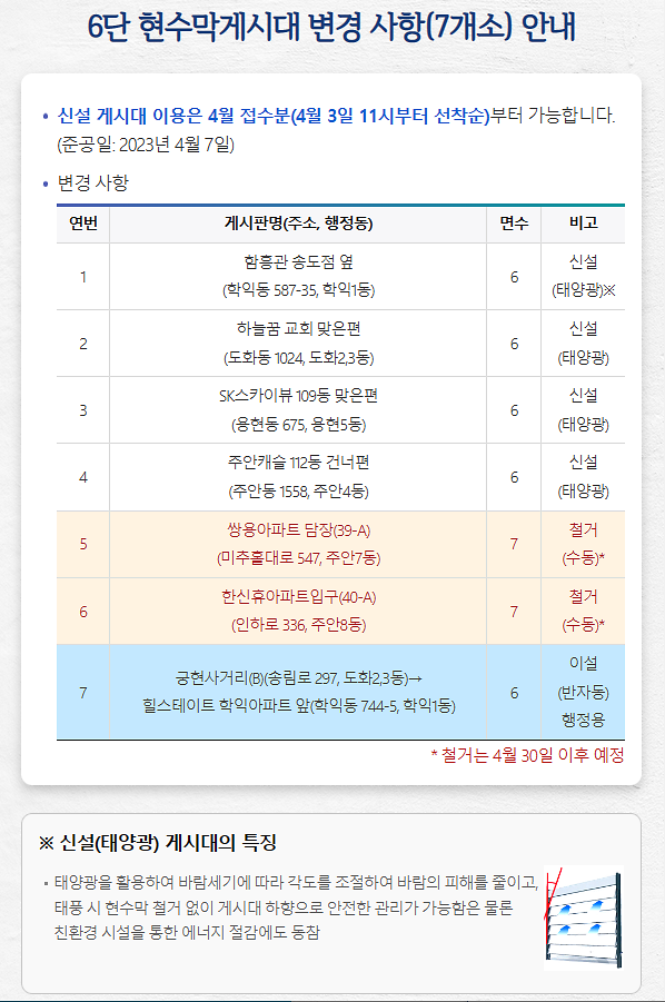 6단 현수막게시대 변경 사항(7개소) 안내
