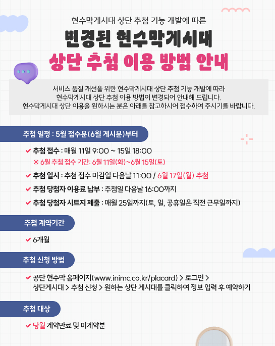 변경된 현수막게시대 상단 추첨 이용 방법 안내(6월 접수분)