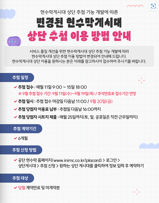 현수막게시대 상단 추첨 이용 방법 안내(9월 추첨)