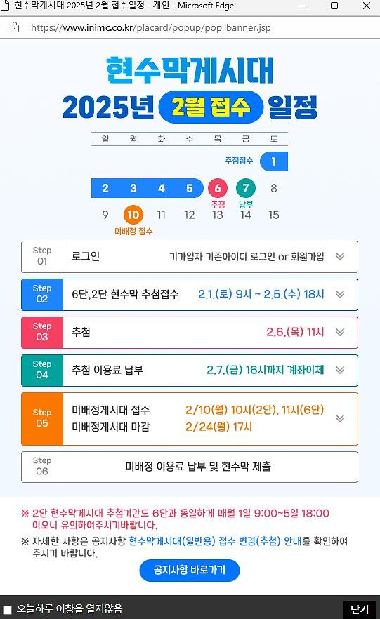 현수막게시대 2025년 2월 접수일정 안내