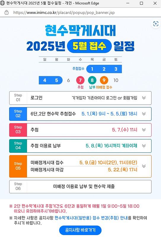 현수막게시대 2025년 5월 접수일정 안내